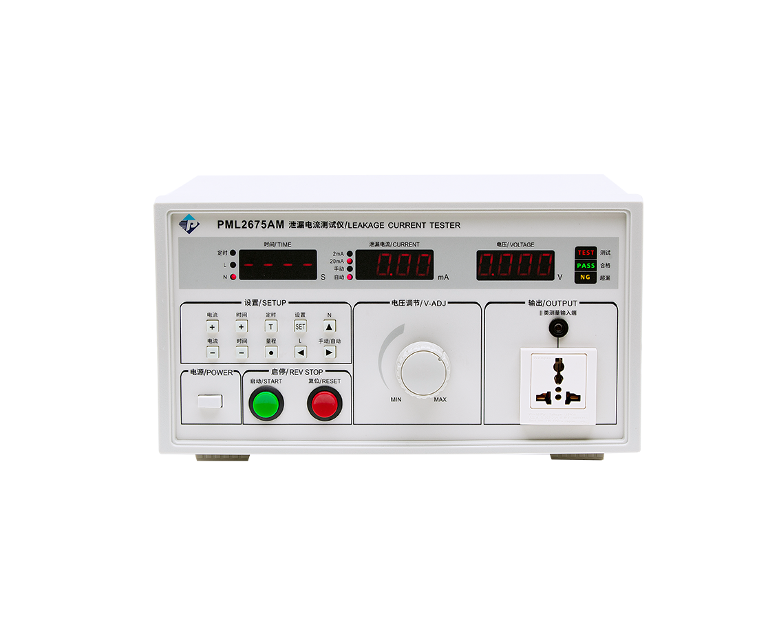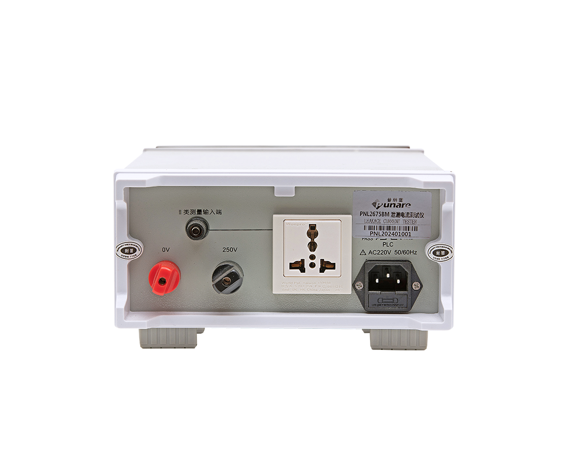PNL2675系列泄漏电流测试仪用于测量电器的工作电源(或其他电源)通过绝缘或分布参数阻抗产生的与工作无关的泄漏电流是衡量电器绝缘性好坏以及产品安全性能的检测实验设备。